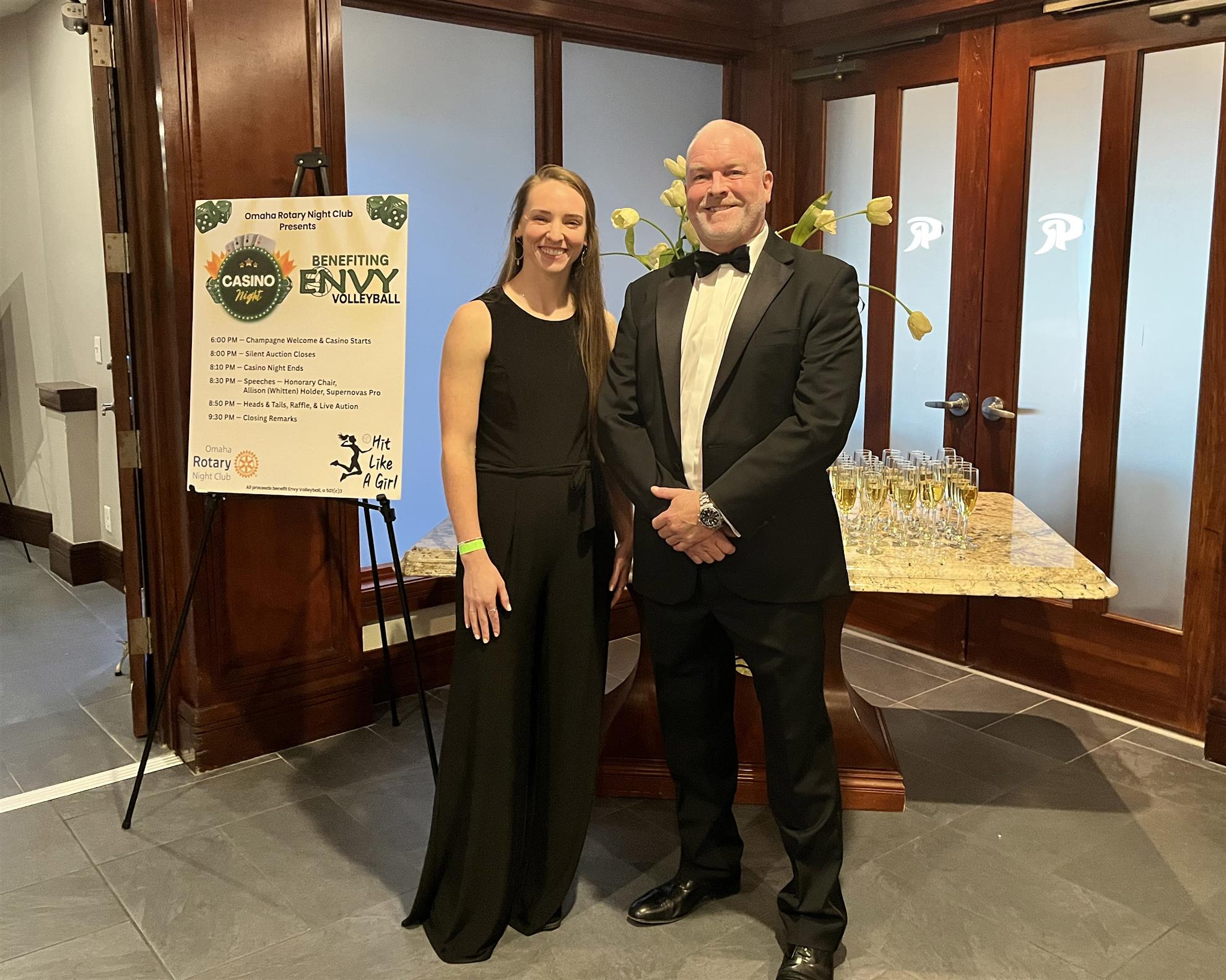 Hosted as an Omaha Rotary Night–sponsored Casino Night Gala, the event brought together community leaders, families, and supporters for food, casino-style games, raffles, wine and bourbon pulls, and live and silent auctions. The gala was designed not only as a celebration of ENVY Volleyball’s rapid growth – as the fastest growing youth volleyball club in the United States, but as a strategic fundraiser to expand financial aid and program capacity for young athletes.